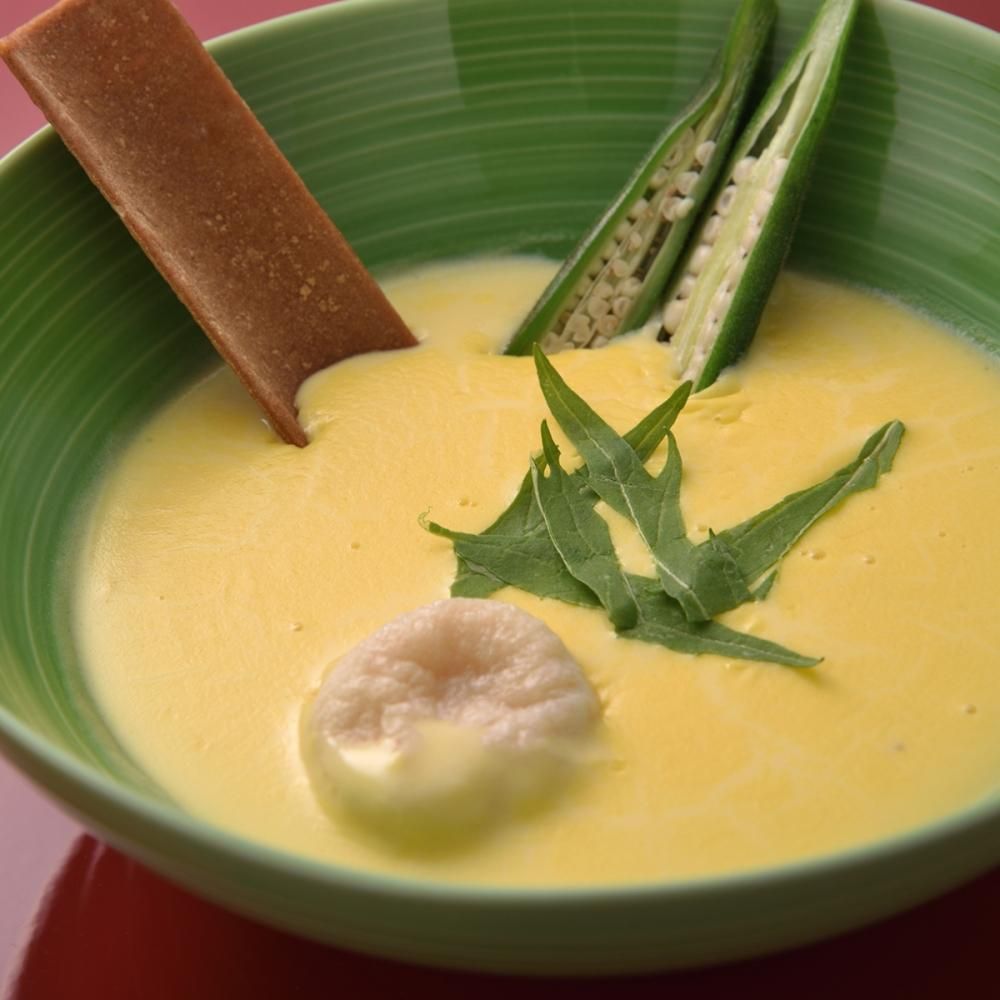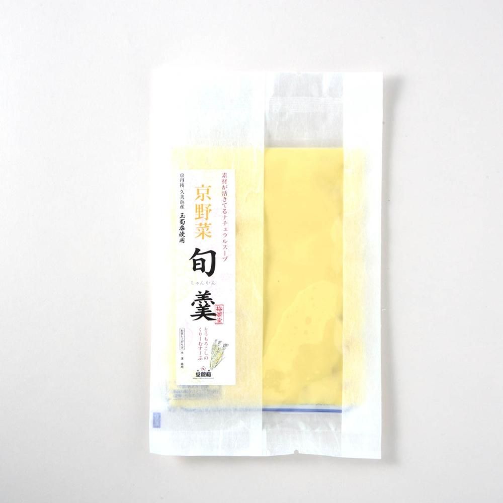 ブイヨンを使わずに、ほとんどトウモロコシと乳製品のみで作る挑戦的な作品。スープとして最も一般的な材料のトウモロコシだけに、旬羹の品質の高さと方向性がはっきりと感じられる逸品です。素材の味のみでストーレートに勝負する、甘さ!香ばしい香り!スッキリした余韻! ※写真は調理例です。お好みのお野菜をご用意ください。 京野菜をはじめとした、京都産素材をふんだんに使った本格スープ。 日本料理の心である、旬の素材と味わいを大事にした羹(あつもの、日本語でスープのこと)です。 【「旬羹」の特徴】 1 素材を厳選 それぞれのスープのフレーバーを決める野菜は京都産の路地物を中心にチョイス。 できるだけ産地に足を運び、土と生産者のめぐみを感じられる素材を選びました。 2 通も納得する本物の味 食にこだわる消費者のために添加物や香料に頼らず、素材本来の味を濃厚に味わえるスープにしました。 原価は上がってしまいますが、一般的には常識はずれなほど、原材料をふんだんに使っています。 職人による、レストランレベルの丁寧なつくり方にこだわりました。 3 和と洋の絶妙なバランス感で幅広く 和風素材をスタイリッシュにアレンジしています。味噌などは一歩間違えると味噌汁になってしまいますから。京都の和の感覚を活かしながら、ディナーの主役になれる、おしゃれなスープになっています。 4 簡単調理 電子レンジで約3 分、湯せんで約3 分半温め、器に盛りつけるだけ。電子レンジ対応包装です。 一部の商品は冷蔵解凍にて、冷製スープとしても楽しめます。