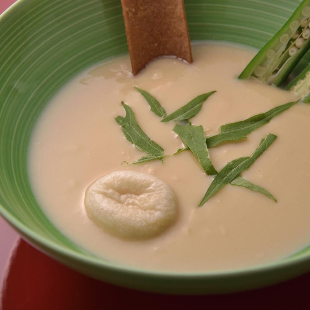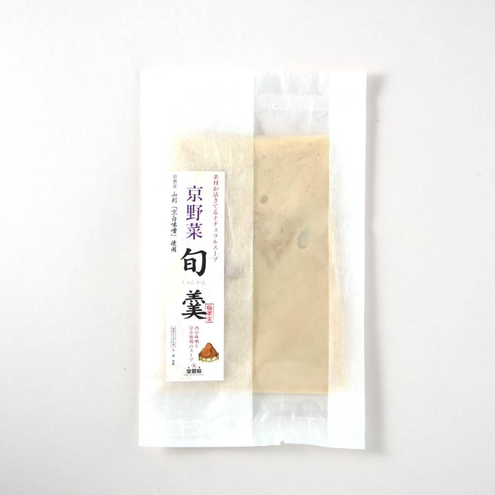 鶏肉流通量のわずか1%の地鶏。中でも両親ともに赤鶏の希少肉を使用しています。京赤地どりの手羽元よりブイヨンをとり、混合だし(鯖、うるめ、宗田鰹など)を加えたベースに、名店「山利」の西京味噌で味付け。米?の優しい甘さに包まれます。味のバランスをとるのに最も苦心した作品です。ほろりとした地鶏肉団子入り。 ※写真は調理例です。お好みのお野菜をご用意ください。 【「旬羹」の特徴】 1 素材を厳選 それぞれのスープのフレーバーを決める野菜は京都産の路地物を中心にチョイス。 できるだけ産地に足を運び、土と生産者のめぐみを感じられる素材を選びました。 2 通も納得する本物の味 食にこだわる消費者のために添加物や香料に頼らず、素材本来の味を濃厚に味わえるスープにしました。 原価は上がってしまいますが、一般的には常識はずれなほど、原材料をふんだんに使っています。 職人による、レストランレベルの丁寧なつくり方にこだわりました。 3 和と洋の絶妙なバランス感で幅広く 和風素材をスタイリッシュにアレンジしています。味噌などは一歩間違えると味噌汁になってしまいますから。京都の和の感覚を活かしながら、ディナーの主役になれる、おしゃれなスープになっています。 4 簡単調理 電子レンジで約3 分、湯せんで約3 分半温め、器に盛りつけるだけ。電子レンジ対応包装です。 一部の商品は冷蔵解凍にて、冷製スープとしても楽しめます。